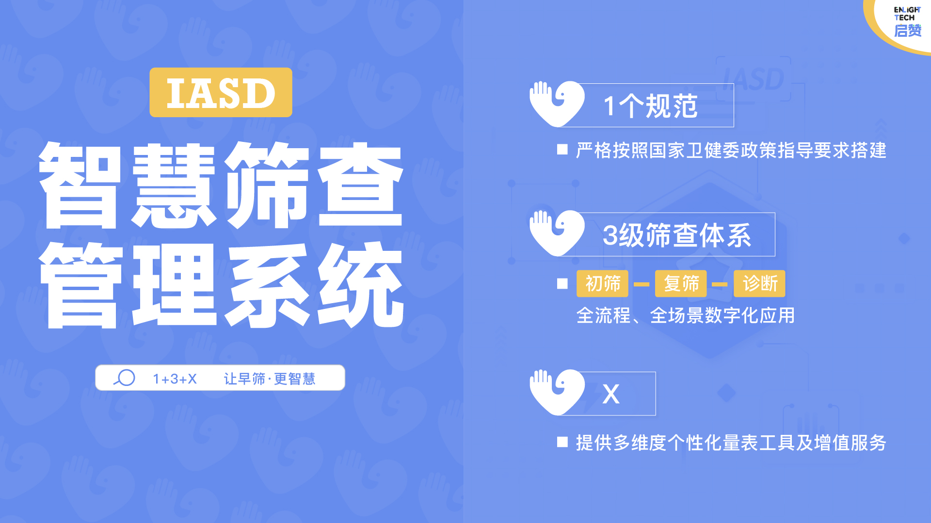 IASD智慧篩查系統是啟贊(天津)科技有限公司嚴格按照國家衛健委規范要求,專為兒童孤獨癥篩查業務需求開發的數字化、信息化平臺,為各地區大規模兒童孤獨癥篩查提供科學、高效和精準的服務。